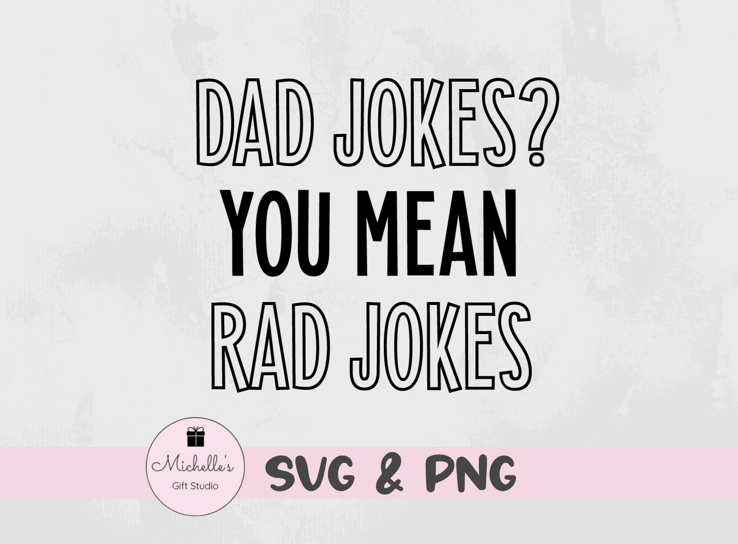 Dad Jokes You Mean Rad Jokes is a digital cutting file that can be used with Cricut or Cameo cutting machines. Please be sure your cutting machine & software are compatible with one of the file types listed below BEFORE purchasing.