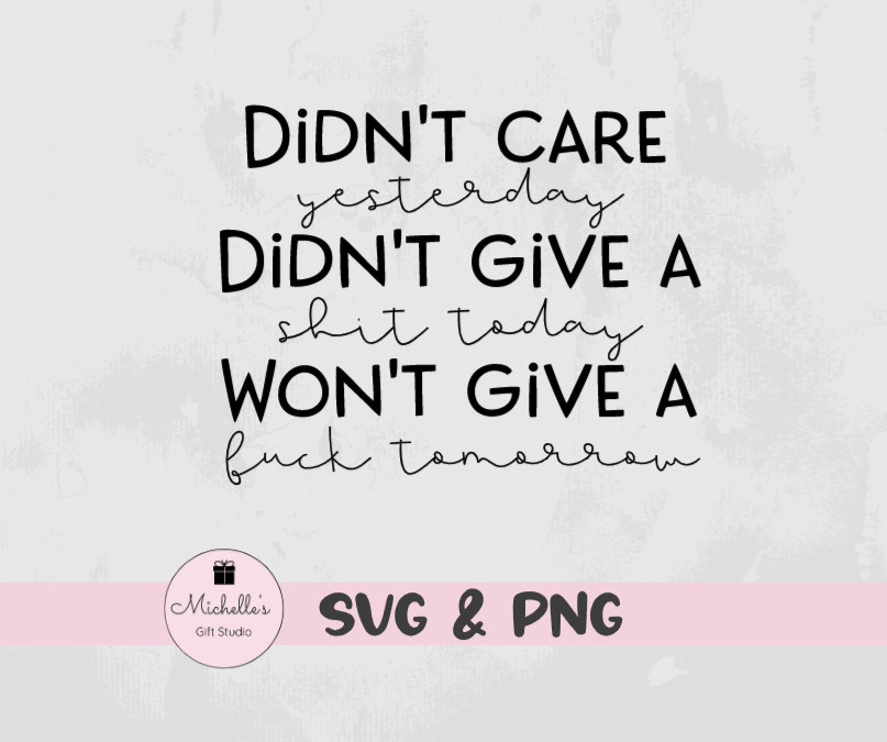 Didn’t Care Yesterday is a digital cutting file that can be used with Cricut or Cameo cutting machines. Please be sure your cutting machine & software are compatible with one of the file types listed below BEFORE purchasing.