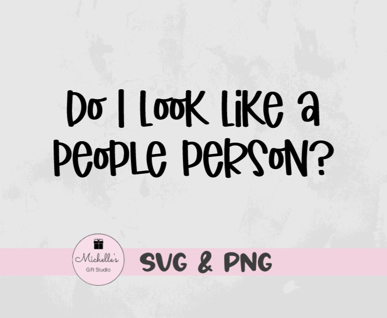 Do I Look Like a People Person is a digital cutting file that can be used with Cricut or Cameo cutting machines. Please be sure your cutting machine & software are compatible with one of the file types listed below BEFORE purchasing.