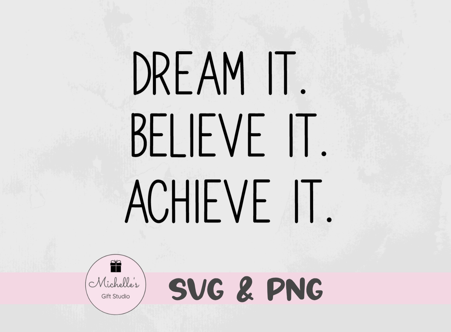 Dream It Believe It Achieve It is a digital cutting file that can be used with Cricut or Cameo cutting machines. Please be sure your cutting machine & software are compatible with one of the file types listed below BEFORE purchasing.