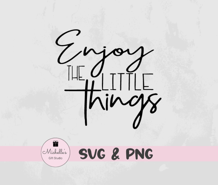 Enjoy the Little Things is a digital cutting file that can be used with Cricut or Cameo cutting machines. Please be sure your cutting machine & software are compatible with one of the file types listed below BEFORE purchasing.
