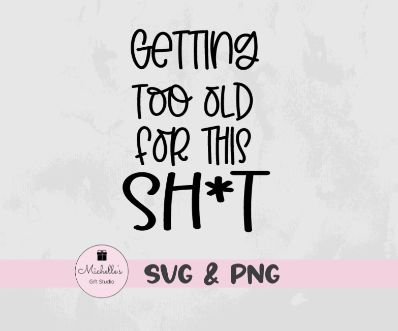 Getting Too Old for This Sh*t is a digital cutting file that can be used with Cricut or Cameo cutting machines. Please be sure your cutting machine & software are compatible with one of the file types listed below BEFORE purchasing.