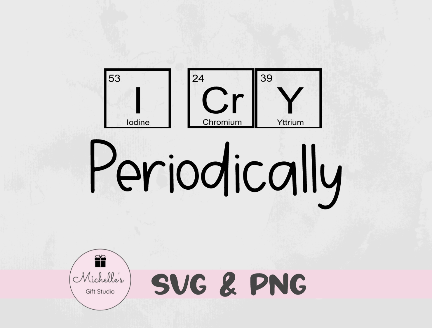 I Cry Periodically is a digital cutting file that can be used with Cricut or Cameo cutting machines. Please be sure your cutting machine & software are compatible with one of the file types listed below BEFORE purchasing.