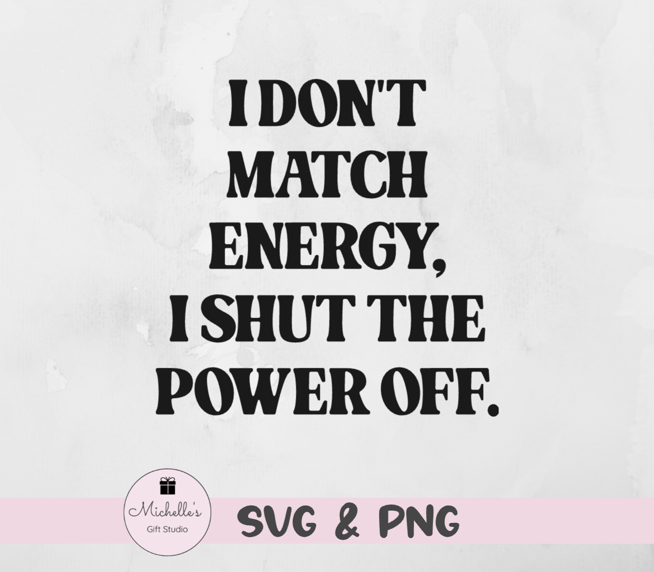 I Don’t Match Energy is a digital cutting file for Cricut or Cameo cutting machines. Please ensure that your cutting machine and software are compatible with one of the file types listed below BEFORE purchasing.