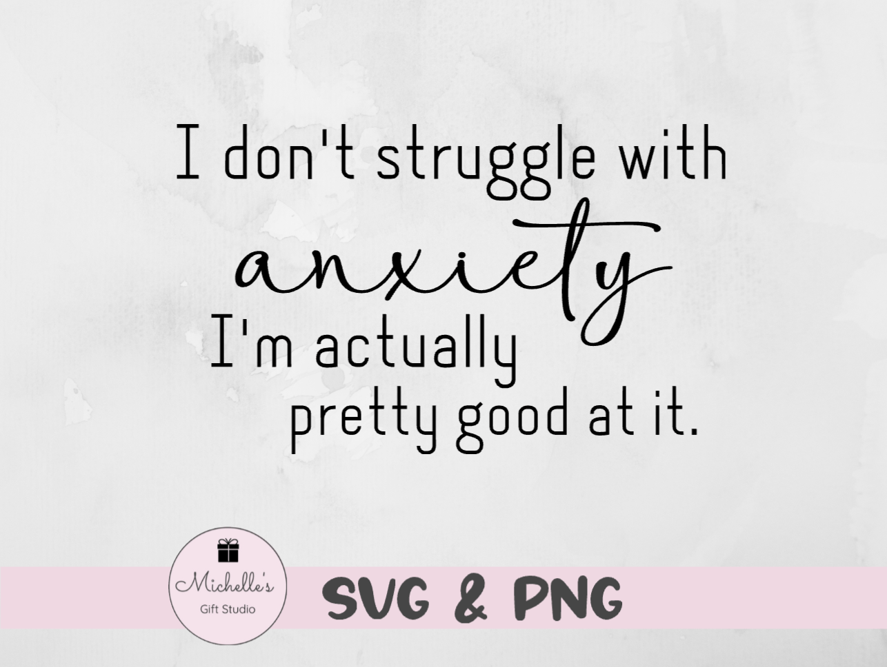 I Don’t Struggle With Anxiety is a digital cutting file for Cricut or Cameo cutting machines. Please be sure your cutting machine and software are compatible with one of the file types listed below BEFORE purchasing.