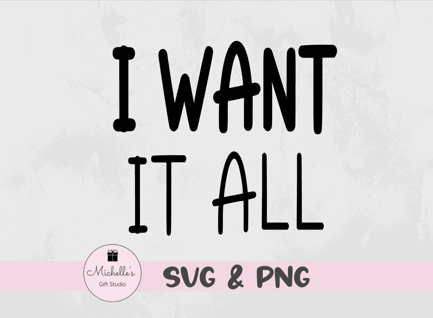 I Want It All is a digital cutting file that can be used with Cricut or Cameo cutting machines. Please be sure your cutting machine & software are compatible with one of the file types listed below BEFORE purchasing.