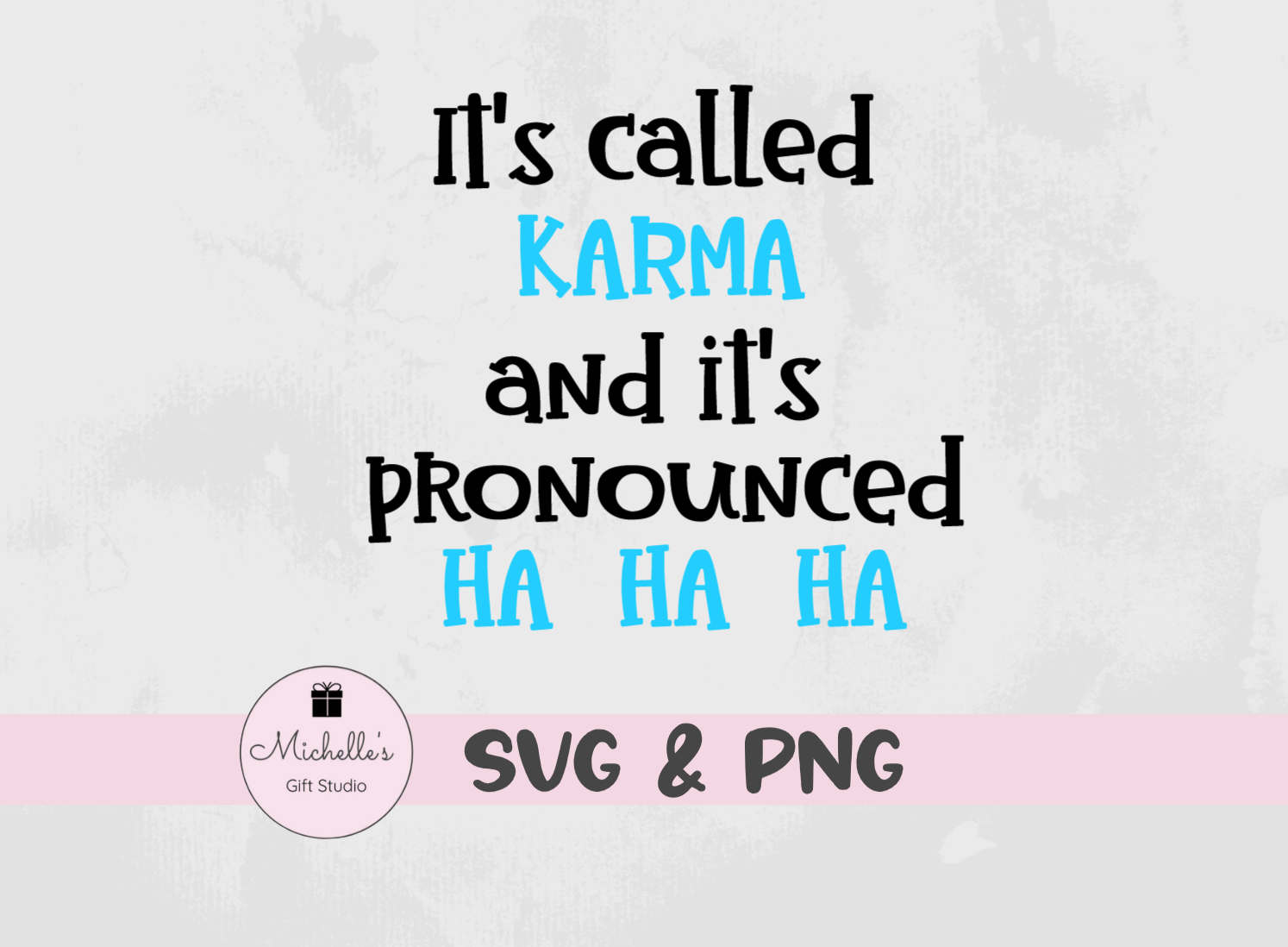 It’s Called Karma and It’s Pronounced HA HA HA is a digital cutting file that can be used with Cricut or Cameo cutting machines. Please be sure your cutting machine & software are compatible with one of the file types listed below BEFORE purchasing.