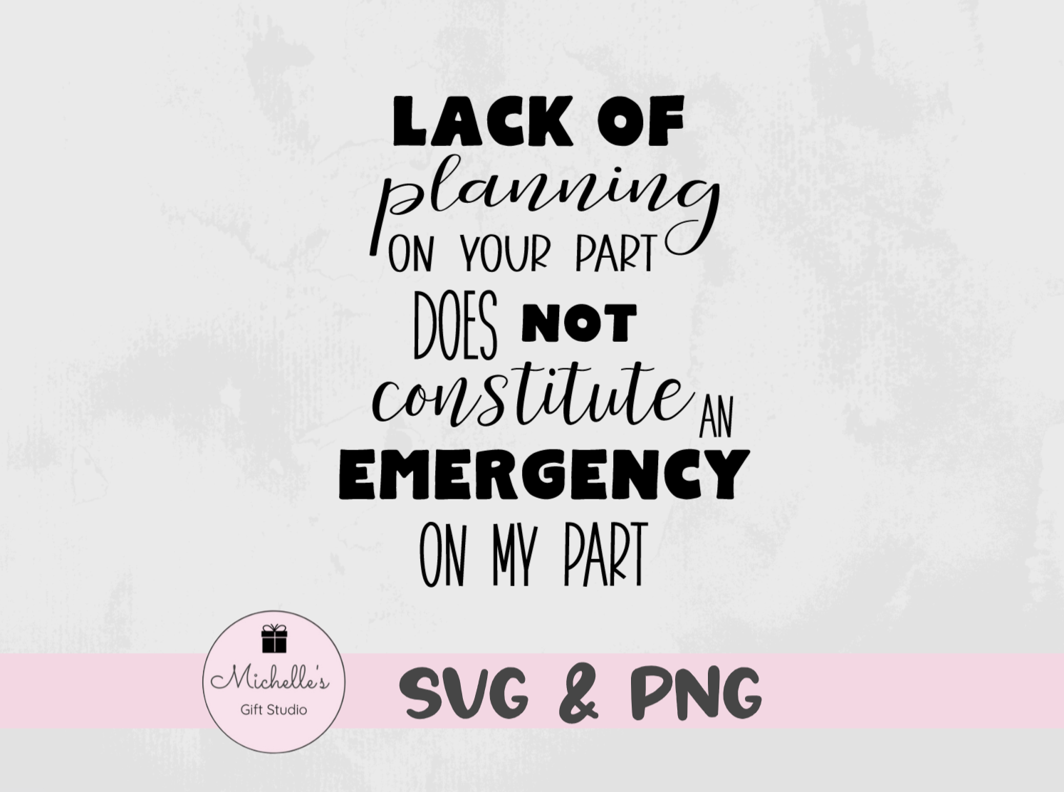 Lack of Planning…Emergency on My Part is a digital cutting file that can be used with Cricut or Cameo cutting machines. Please be sure your cutting machine & software are compatible with one of the file types listed below BEFORE purchasing.