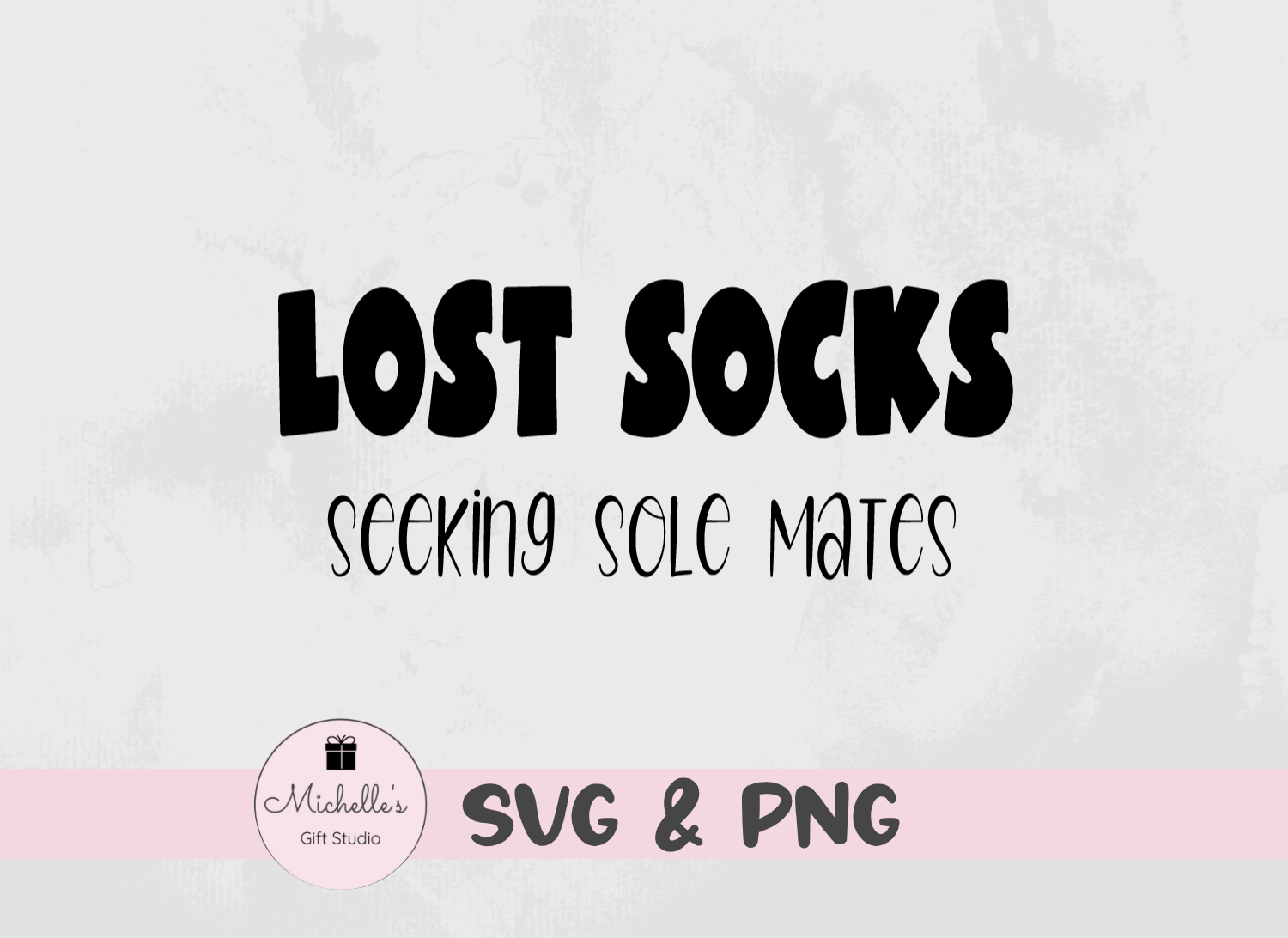 Lost Socks Seeking Sole Mates is a digital cutting file that can be used with Cricut or Cameo cutting machines. Please be sure your cutting machine & software are compatible with one of the file types listed below BEFORE purchasing.
