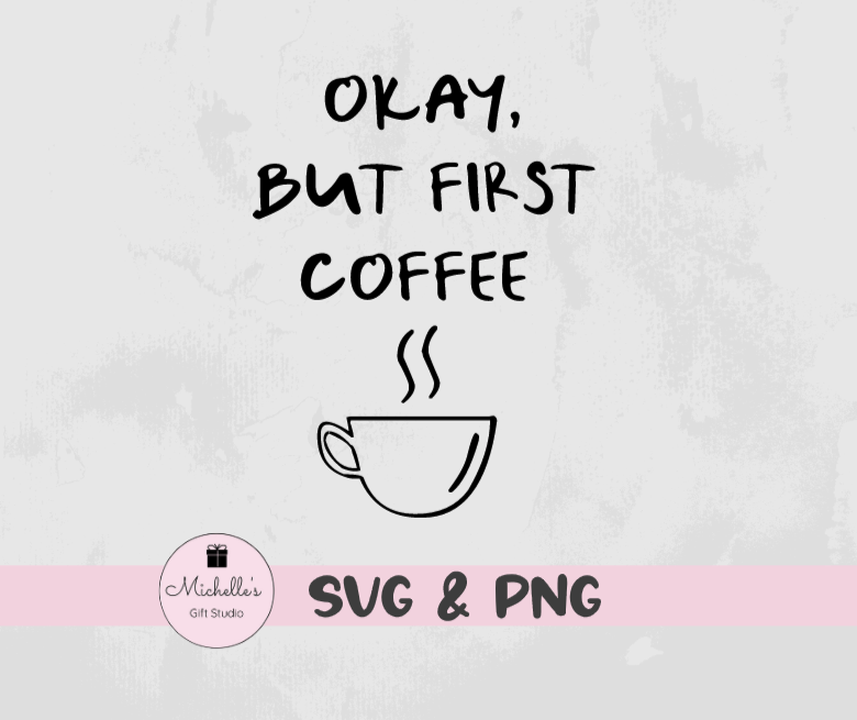 Okay, but First Coffee is a digital cutting file that can be used with Cricut or Cameo cutting machines. Please be sure your cutting machine & software are compatible with one of the file types listed below BEFORE purchasing.