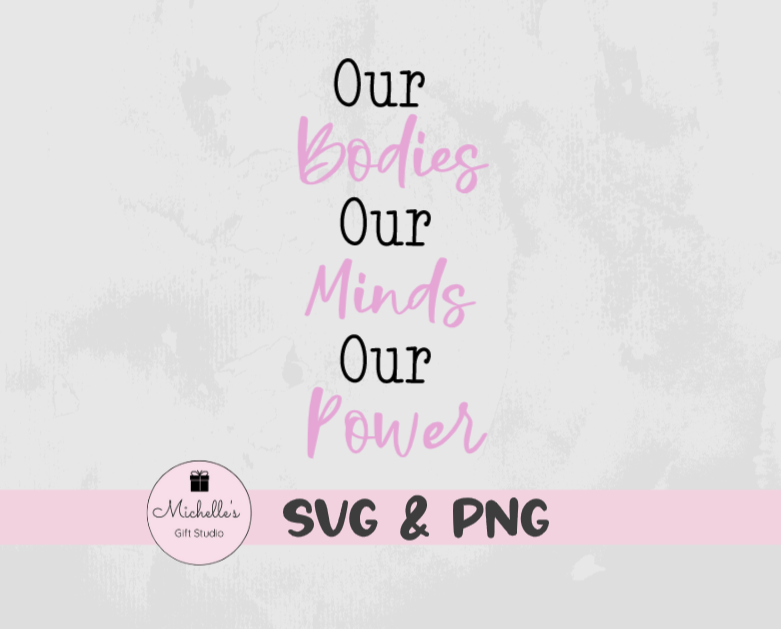 Our Bodies Our Minds Our Power is a digital cutting file that can be used with Cricut or Cameo cutting machines. Please be sure your cutting machine & software are compatible with one of the file types listed below BEFORE purchasing.