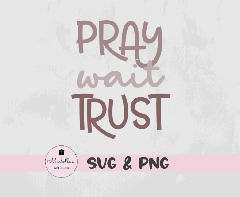 Pray Wait Trust is a digital cutting file that can be used with Cricut or Cameo cutting machines. Please be sure your cutting machine & software are compatible with one of the file types listed below BEFORE purchasing.