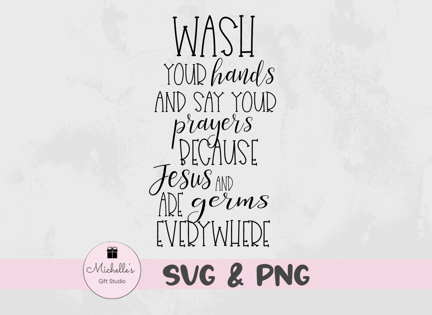 Wash Your Hands and Say Your Prayers Jesus And Germs Are Everywhere is a digital cutting file that can be used with Cricut or Cameo cutting machines. Please be sure your cutting machine & software are compatible with one of the file types listed below BEFORE purchasing.