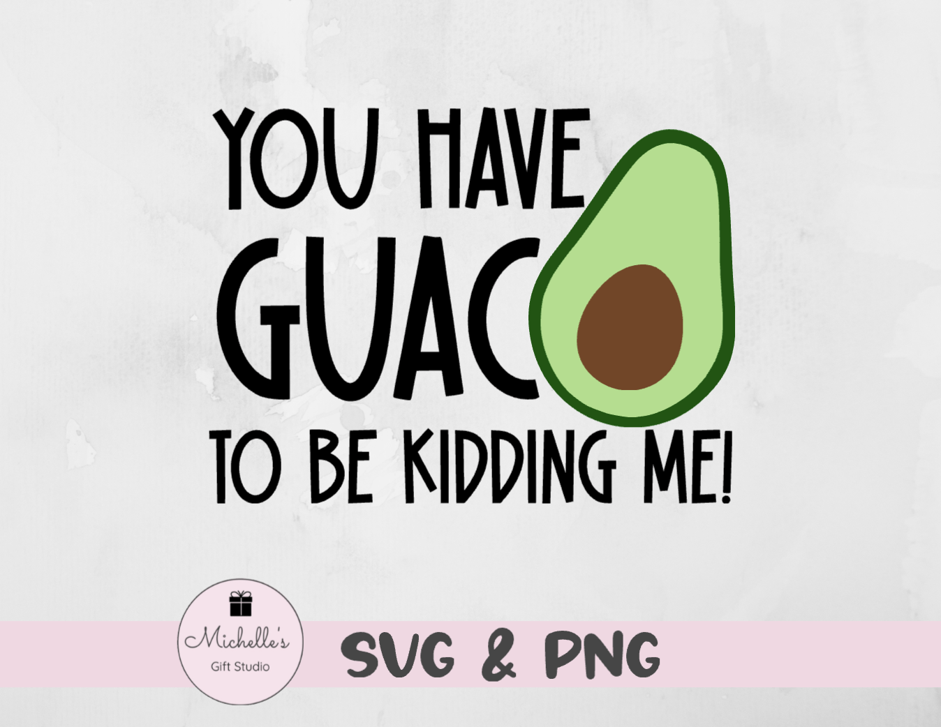 You Have Guac to Be Kidding Me is a digital cutting file compatible with Cricut or Cameo cutting machines. Please ensure your cutting machine & software are compatible with one of the file types listed below BEFORE purchasing.